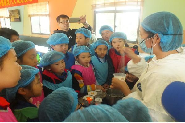 生生牧場工作人員為新華小記者現場教授酸奶制作全過程