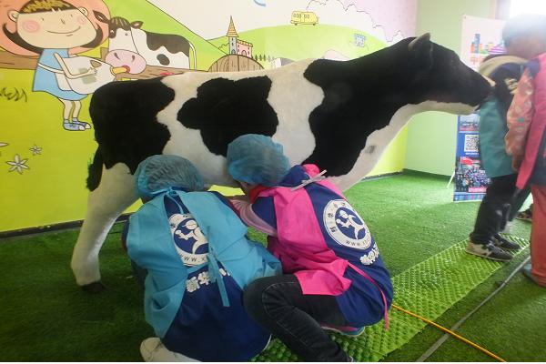 新華小記者首先來到擠奶廳的現場,工作人員做好準備和清潔工作后,小記者們就開始“擠奶”了。小記者們仔細觀看著,在工作人員有序地安排下完成了擠奶工作。